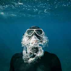 Ein Mann hat eine Spritze, mit der er unendlich unter Wasser atmen kann. Er taucht 20 m und er sah einen Mann ohne Taucheranzug. Er schwamm 50 m runter und er sah wieder den Mann ohne Taucheranzug. Er tauchte 100 m und sah schon wieder den Mann ohne Taucheranzug. Er nimmt eine Tafel und schrieb: „Wie lange kannst du die Luft anhalten??“