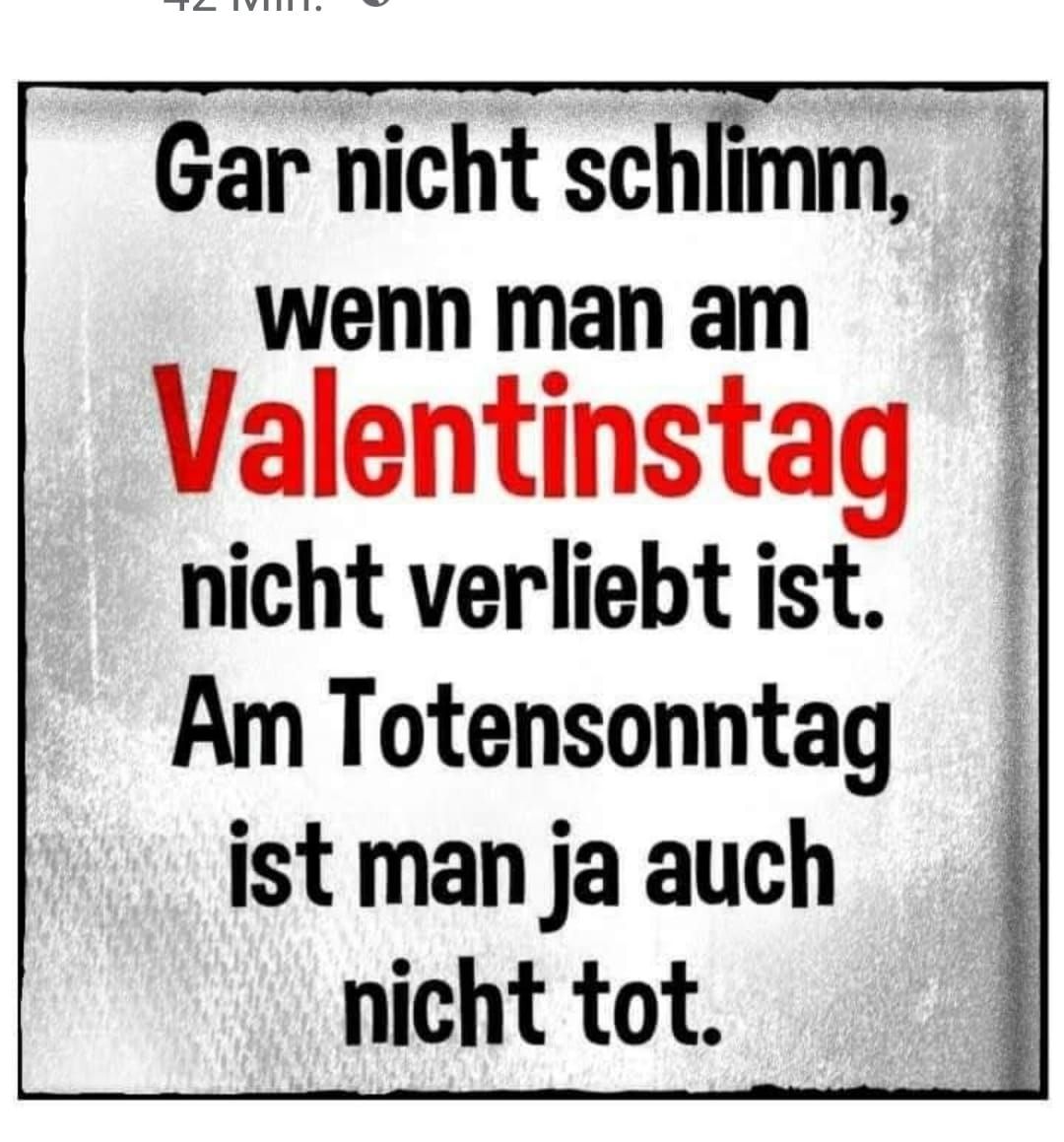 Gar nicht schlimm, wenn man am Valentinstag nicht verliebt ist. Am Totensonntag ist man ja auch nicht tot.