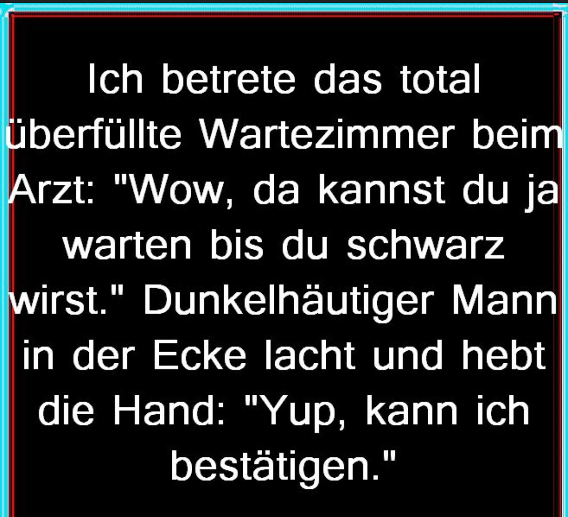 Eine alte Dame sitzt im Wartezimmer. Ein Neonazi setzt sich dazu. Die Dame: „Sie Ärmster! Erst Chemo und dann noch die orthopädischen Schuhe!“