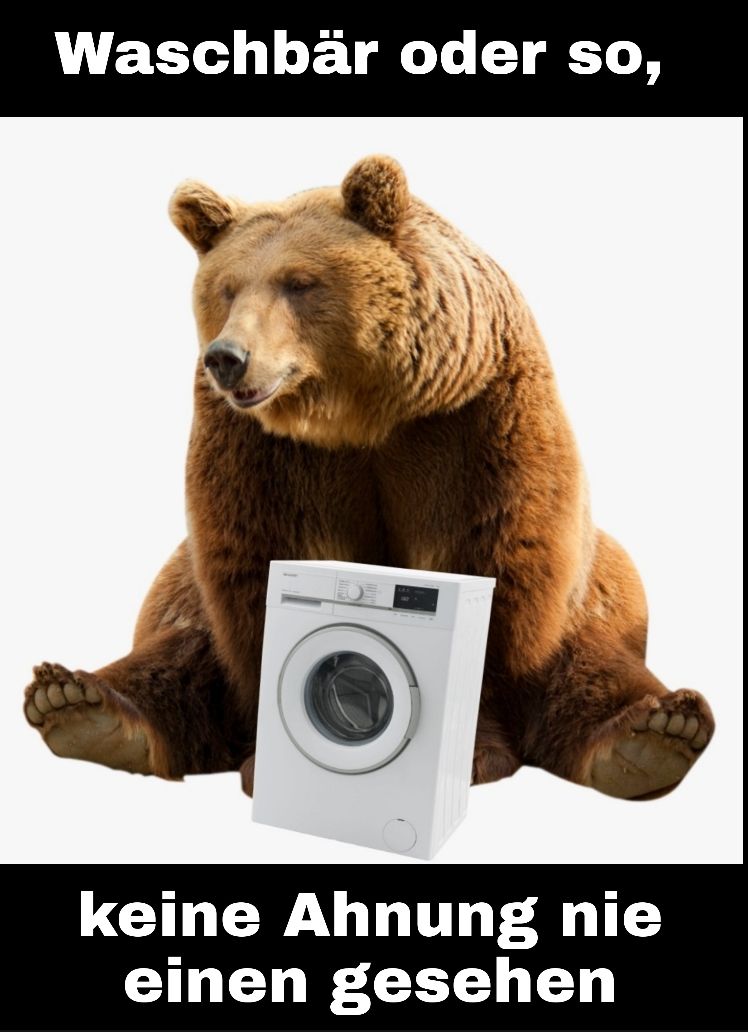 Wie heißt ein muskulöser Waschbär? Waschmaschine.