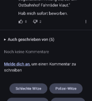 Hab letztens ein Zettel von der Polizei gelesen, darauf stand: "Suchen Jugendlichen Anfang 20, der am Ostbahnhof Fahrräder klaut."