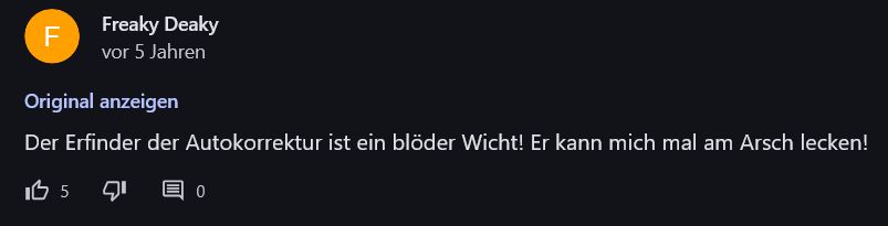 Der Erfinder der Autokorrektur ist ein blöder Wischer! Er kann mich mal am Barsch lecken!