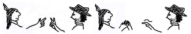 Treffen sich ein Cowboy und ein Indianer. Der Indianer zeigt mit dem Zeigefinger auf den Cowboy. Daraufhin hebt der Cowboy Zeige- und Mittelfinger. Da bildet der Indianer mit seinen beiden Händen ein Dach. Daraufhin macht der Cowboy mit der Hand eine wegwerfende Bewegung.