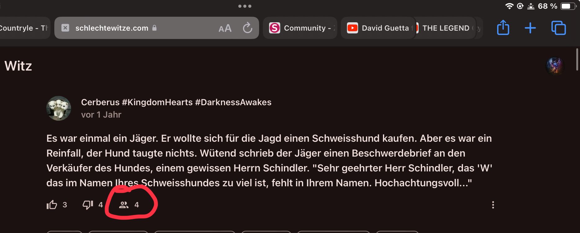 Zumal sie dafür erstmal diesen Witz finden müsste… und die Nachricht