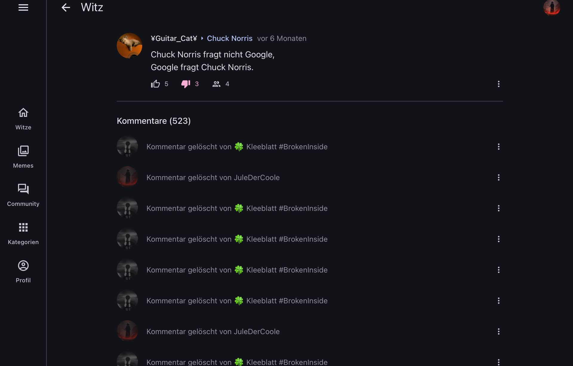 Meinste das is’n guter Platz hier…seit wann sind die ganzen gelöschten Kommis hier?