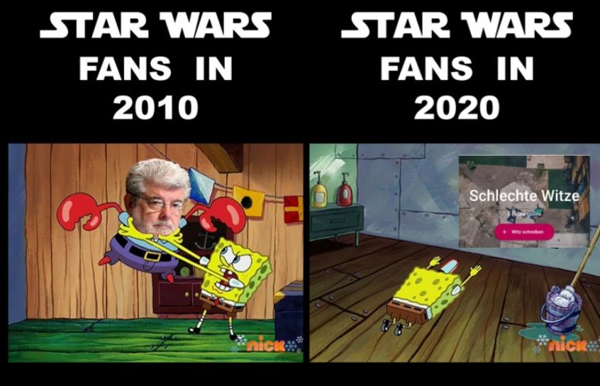 Ich, Erklärbär, muss dir das erklären, weil du dumm bist. Die "Star Wars"-Namen werden hier als Wortspiele verwendet. Anstatt zu sagen "Halt's Maul", sagt er "Halt's Darth Maul"! Anstatt "Willst du die Fresse halten?" sagt er "Wirst du Jedi Fresse halten?" HAHAHA! Du verstehst es immer noch nicht, oder?